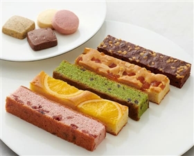 | 内容 | オレンジケーキ×1、ミックスベリーケーキ×1、アップルシュトロイゼル×1、抹茶ショコラケーキ×1、ニューヨークブラウニー×1、ショコラクッキー×1、キャラメルクッキー×1、ストロベリークッキー×2、塩バタークッキー×2 |