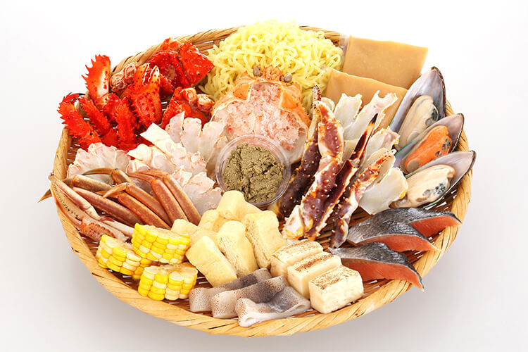 | 内容 | たらばがに・ずわいがに・花咲がに 各180g、 焼き豆腐・秋鮭・松いか・パーナ貝・コーン 各3個、 油揚げ6切、かに甲羅すり身85g、ラーメン200g、かにみそ20g、たれ2個 |