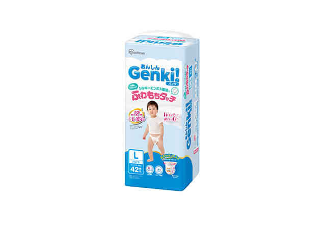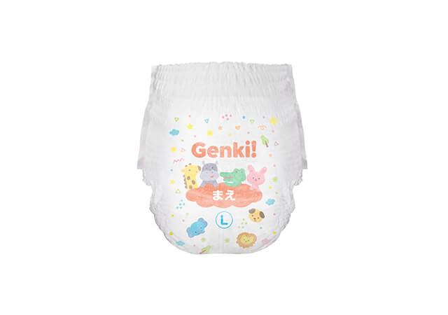 Genki!シリーズはふわふわ・もちもちのやわらかな肌触りで赤ちゃんのデリケートな肌への負担を軽減したいつでもやさしい、あんしんのおむつです。