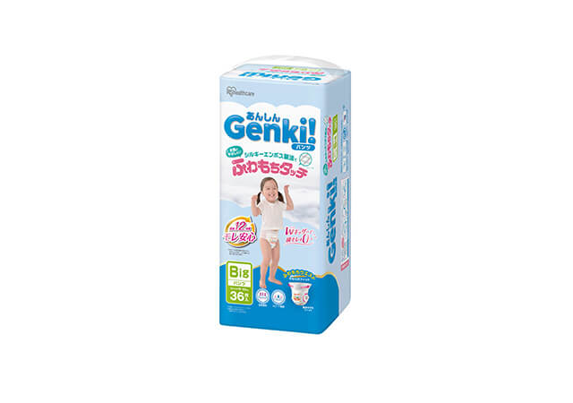 Genki!シリーズはふわふわ・もちもちのやわらかな肌触りで赤ちゃんのデリケートな肌への負担を軽減したいつでもやさしい、あんしんのおむつです。