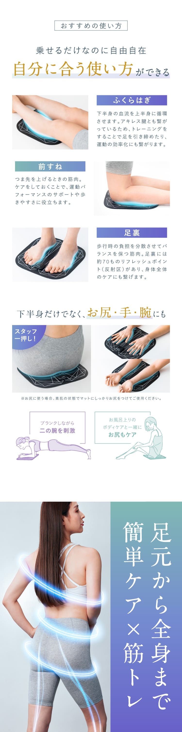 ・足元から全身トータルケア:ふくらはぎ、前すね、足裏、下半身だけでなく、手、腕、お尻にもご使用いただけます。
