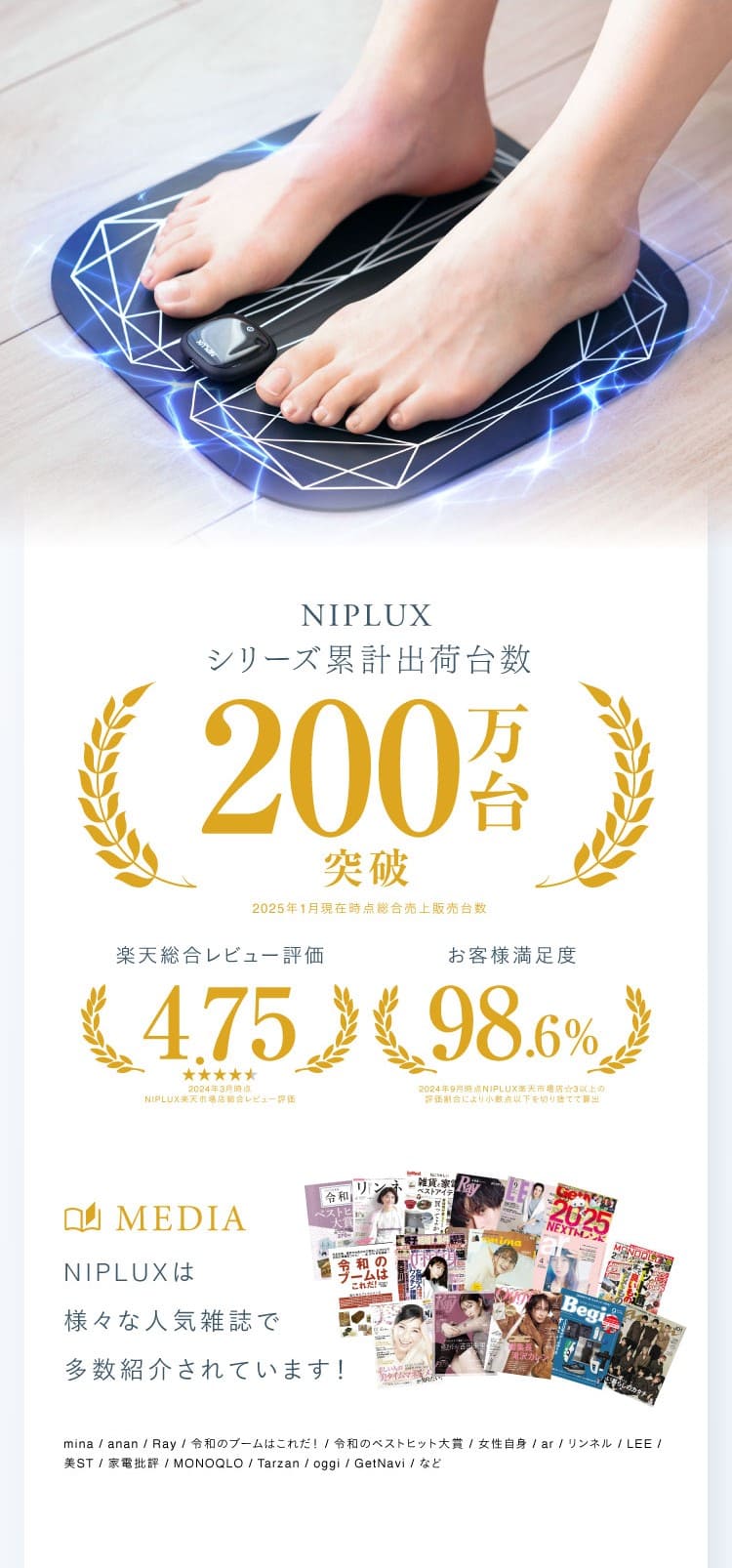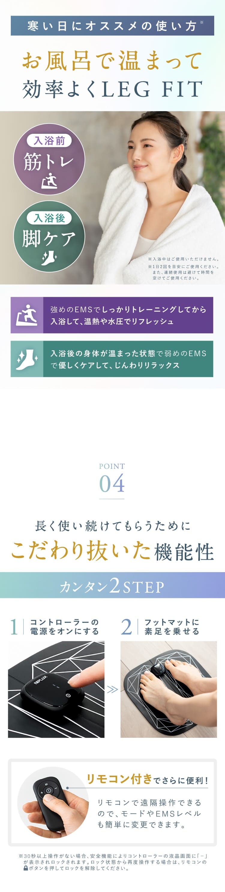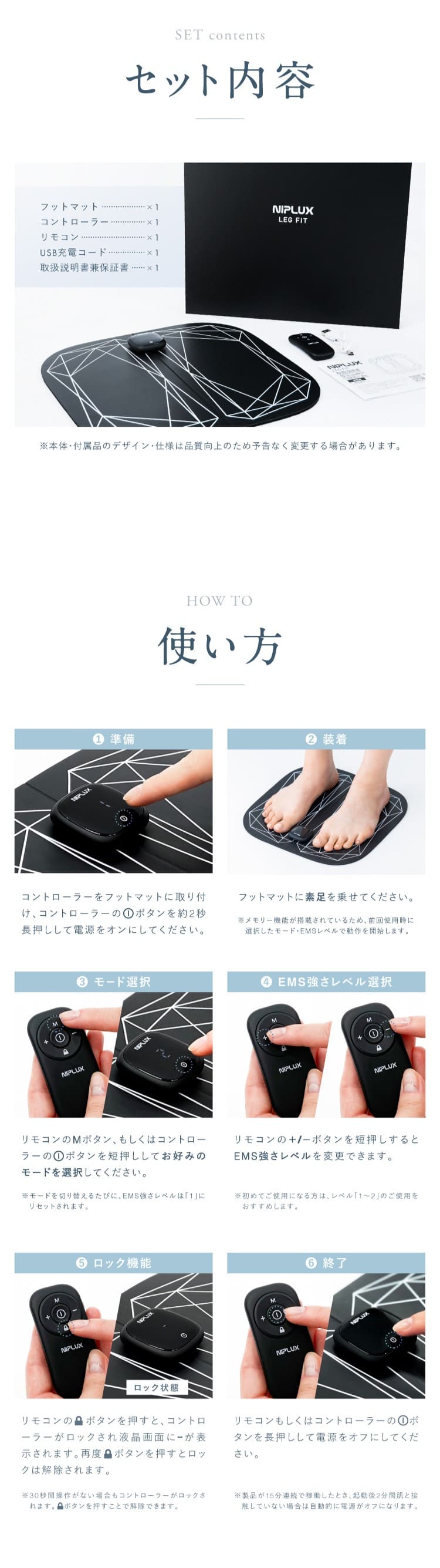 NIPLUX LEG FITは約124g(本体+リモコン)で、フットマットの薄さはわずか約4mmの超軽量設計です。