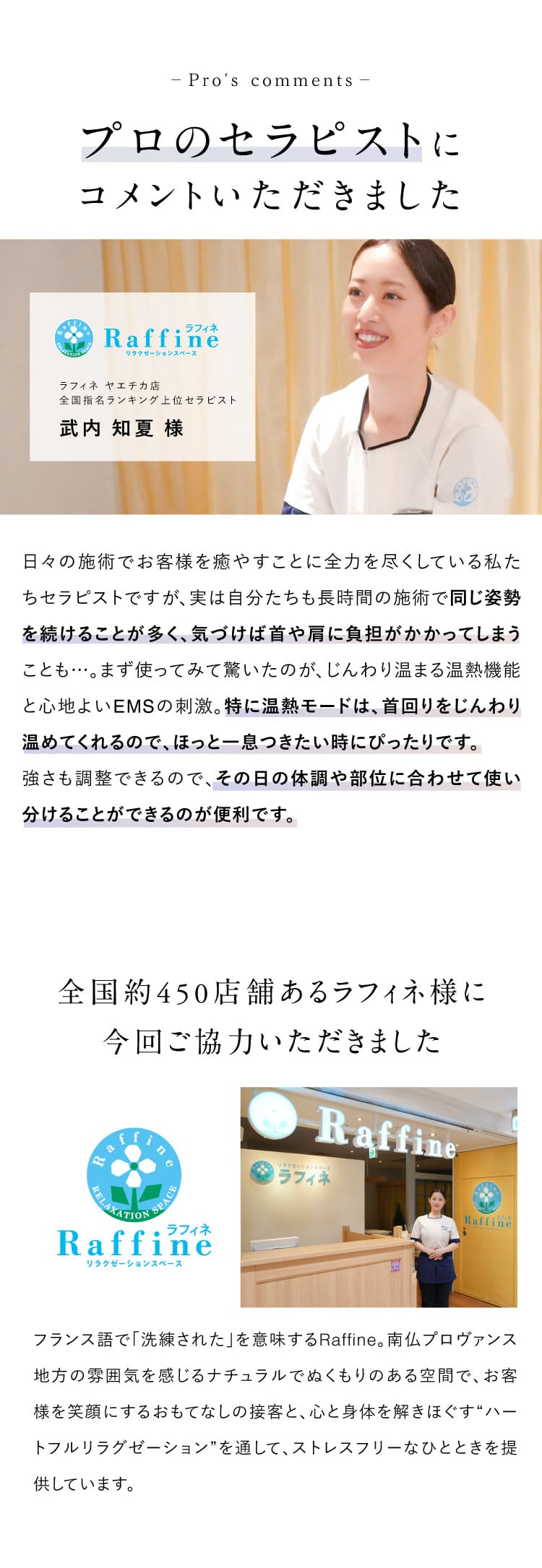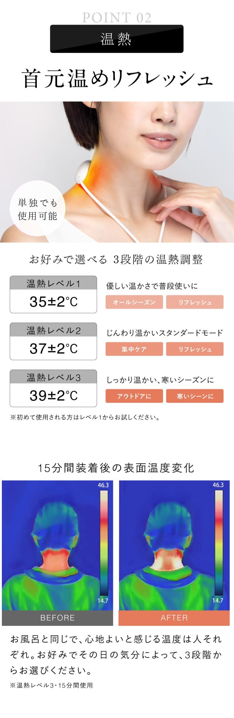 ・【じんわり温かい温熱機能】3段階の温度調整が可能で、お好みに合わせて設定できます。