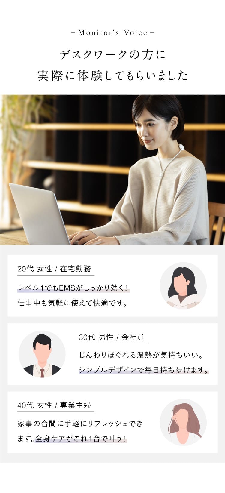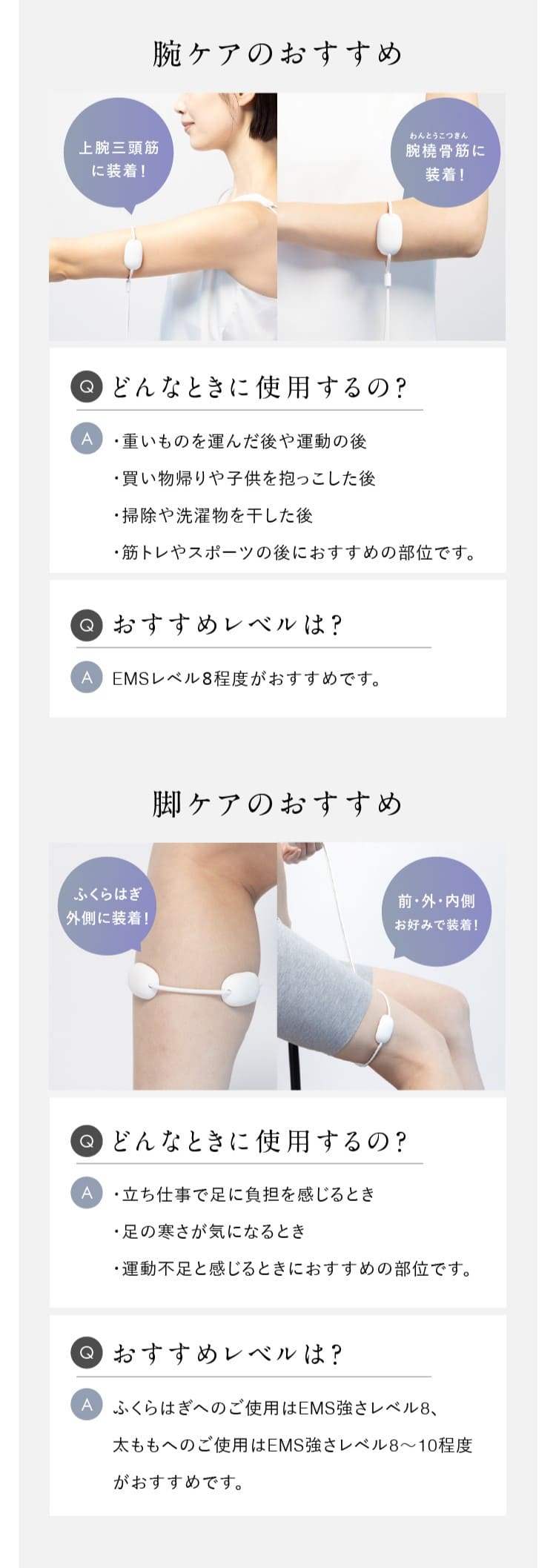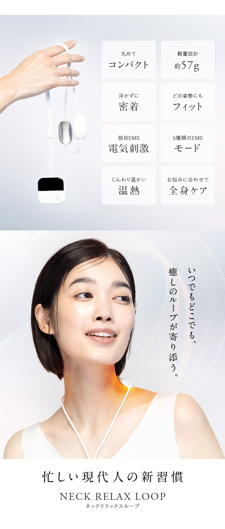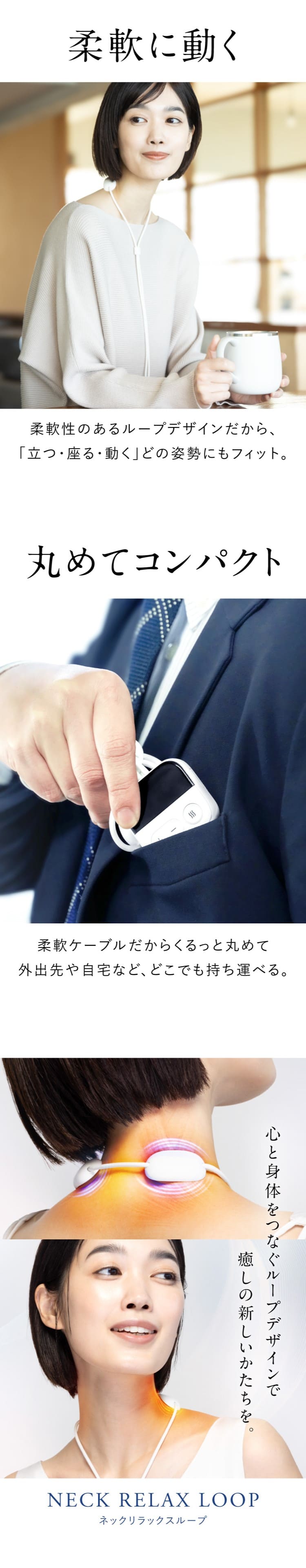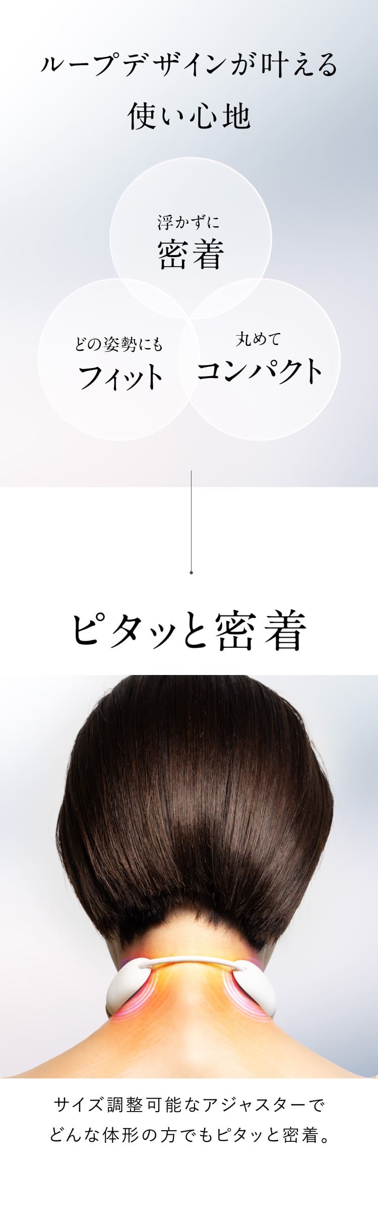柔軟性のあるループデザインで、あらゆる姿勢にフィットします。首、腕、脚など、全身にもお使いいただけます。
