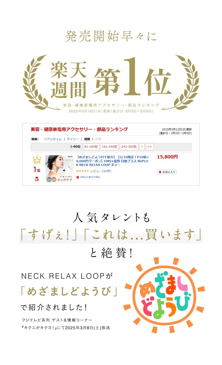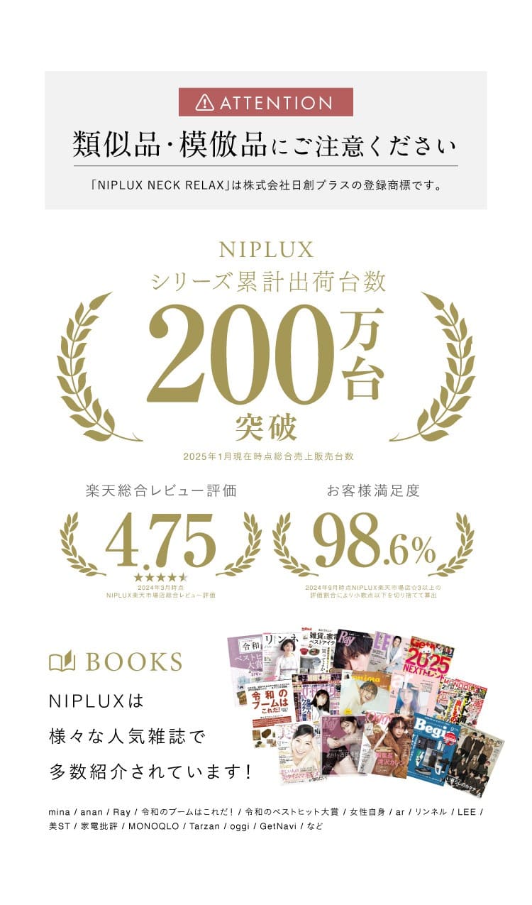 ・【浮かずに密着】NIPLUX NECK RELAX LOOPは、サイズ調整が可能なアジャスターを採用しており、どんな体型の方にもぴったり密着します。