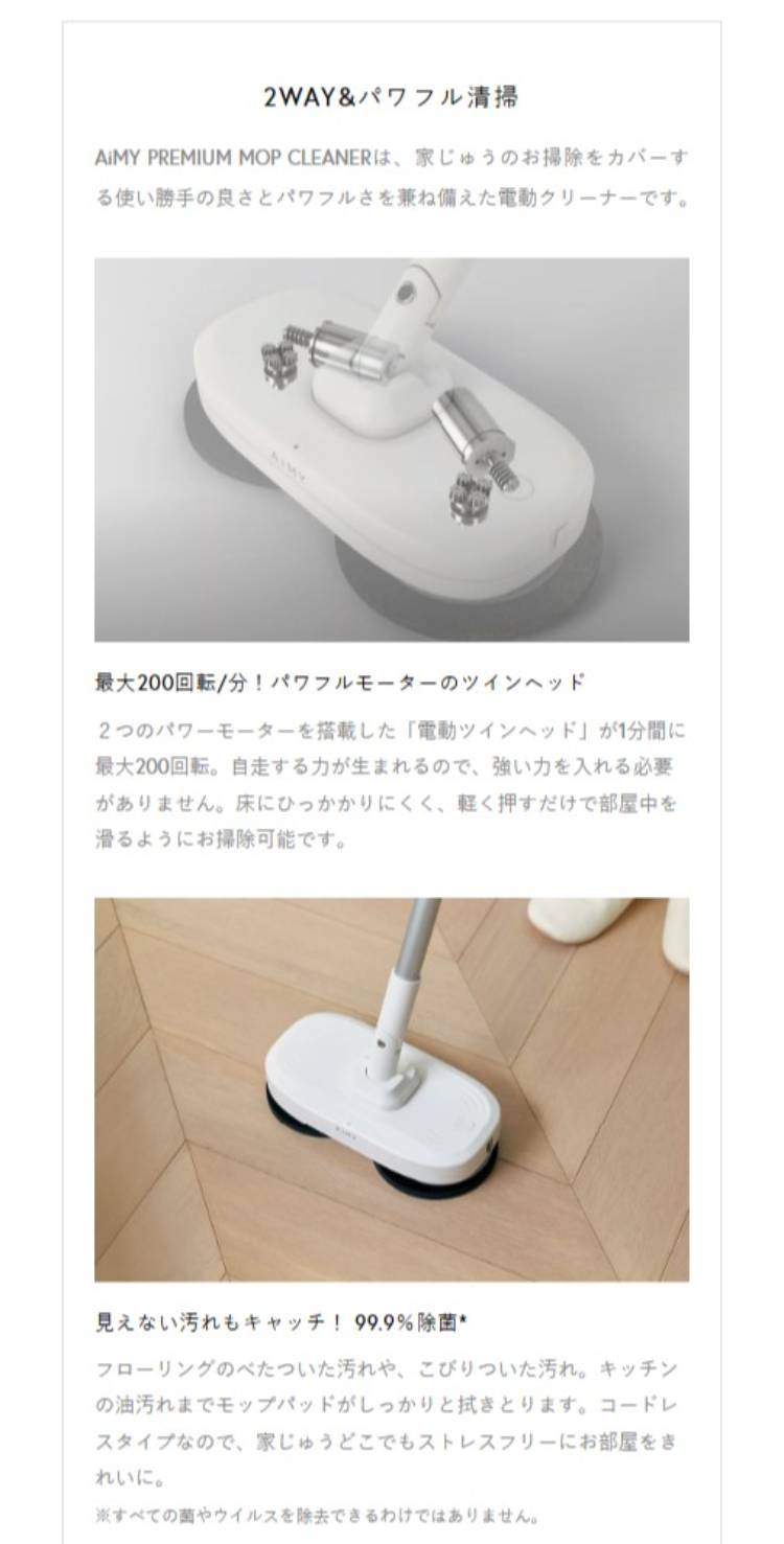 AiMY プレミアムモップクリーナー 専用モップパッド追加4枚付き