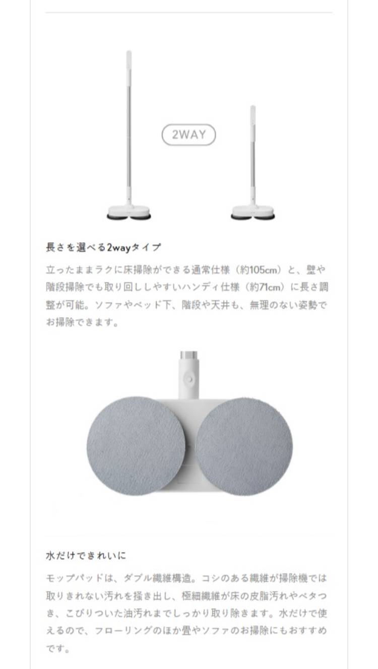 気になる場所をパワフル清掃。 手軽に使えるモップクリーナー