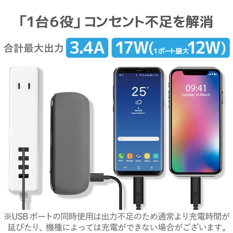 ■本製品一つで別途ACアダプタなどを用意することなくスマートフォンやタブレットの充電が可能です。※充電ケーブルは別途必要です。