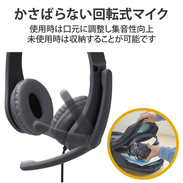 ■回転式のマイクを搭載し、使用時は口元に調整し集音性向上、未使用時は収納することが可能です。