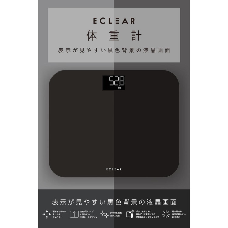 見やすい液晶画面で、場所をとらないスリム&コンパクト設計のエクリア 体重計。