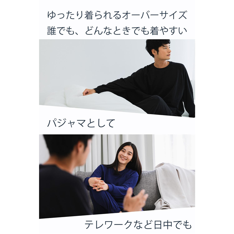 ゆったり着られるオーバーサイズや締めつけない形状など、細部までこだわった設計で快適な安らぎ時間をサポートします。