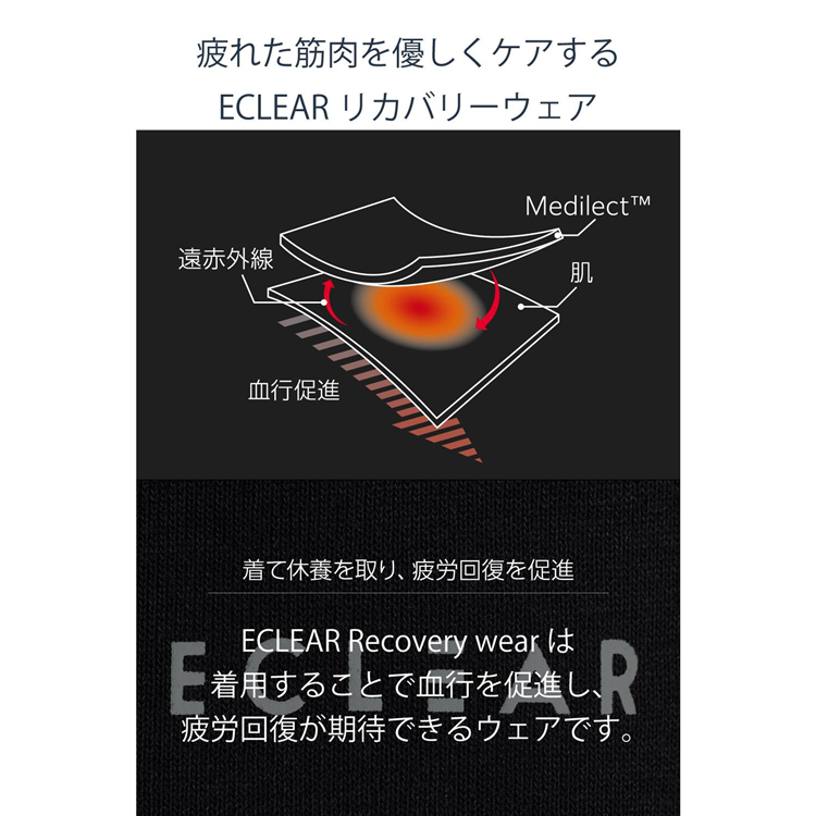 デスクワークや運動後の疲れた筋肉をやさしくケアするECLEAR リカバリーウェアです。