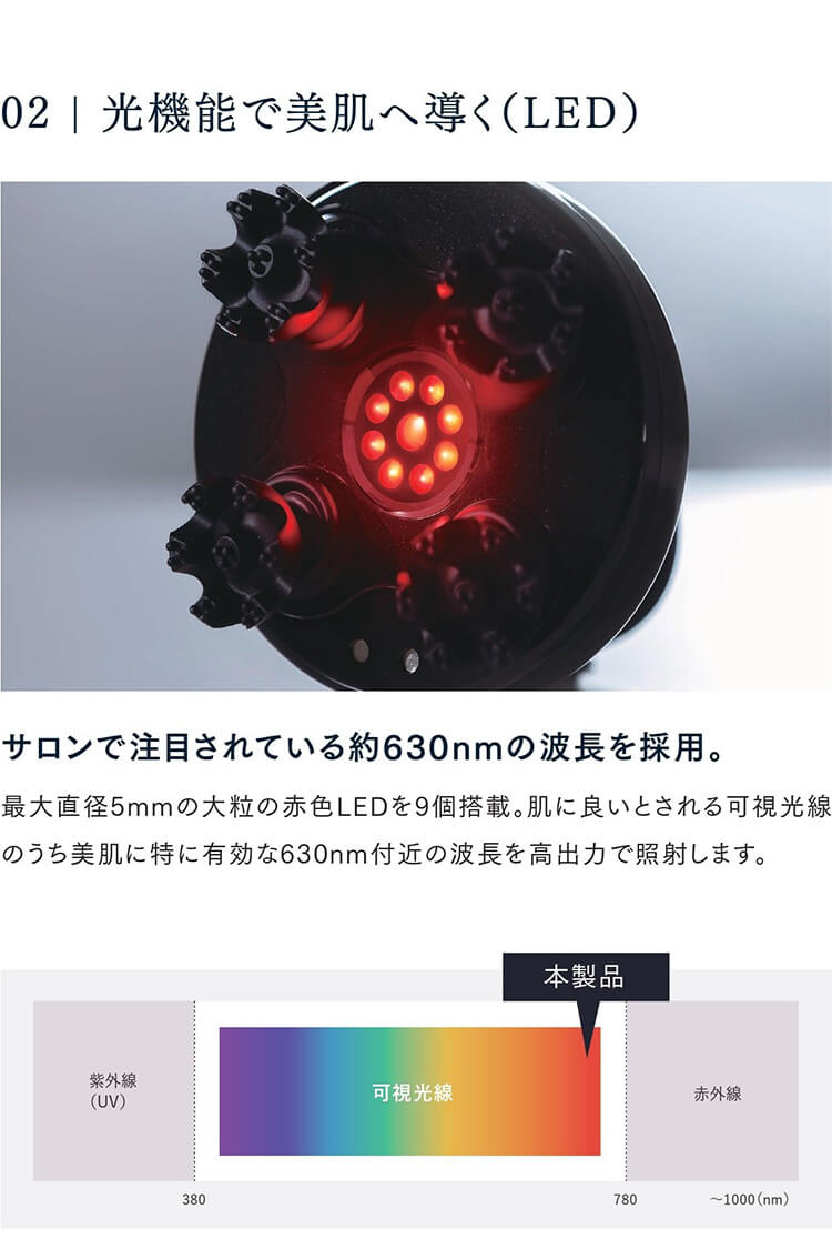 EMS刺激が180%UPしただけでなく、美肌を叶える赤色LEDも搭載。