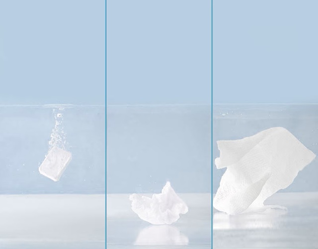 少量のお水を含ませるとおしぼりほどのサイズに広がります。