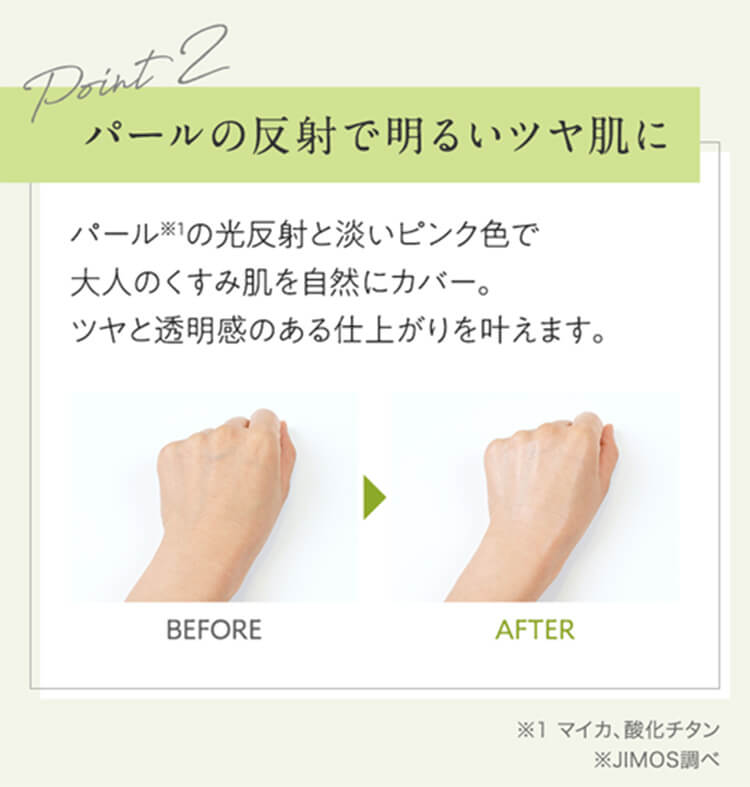 大人のくすみ肌を自然にカバーする、淡いピンクカラーのツヤ肌下地。