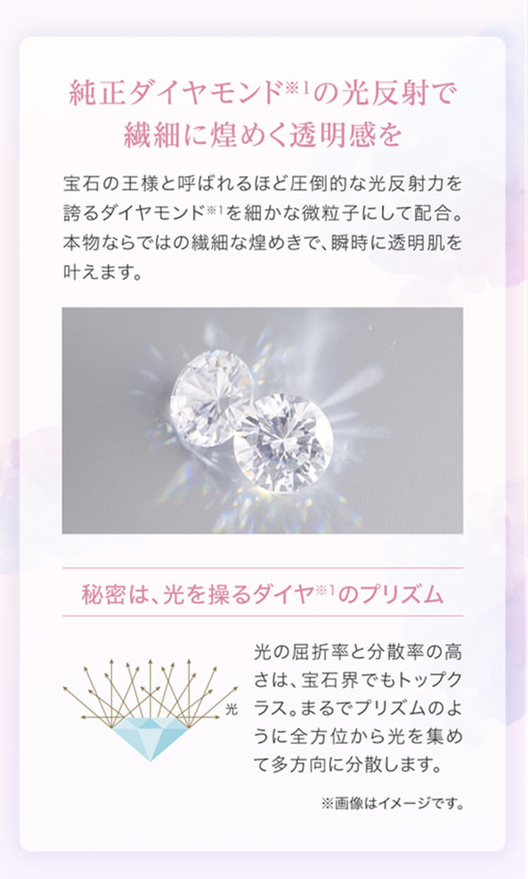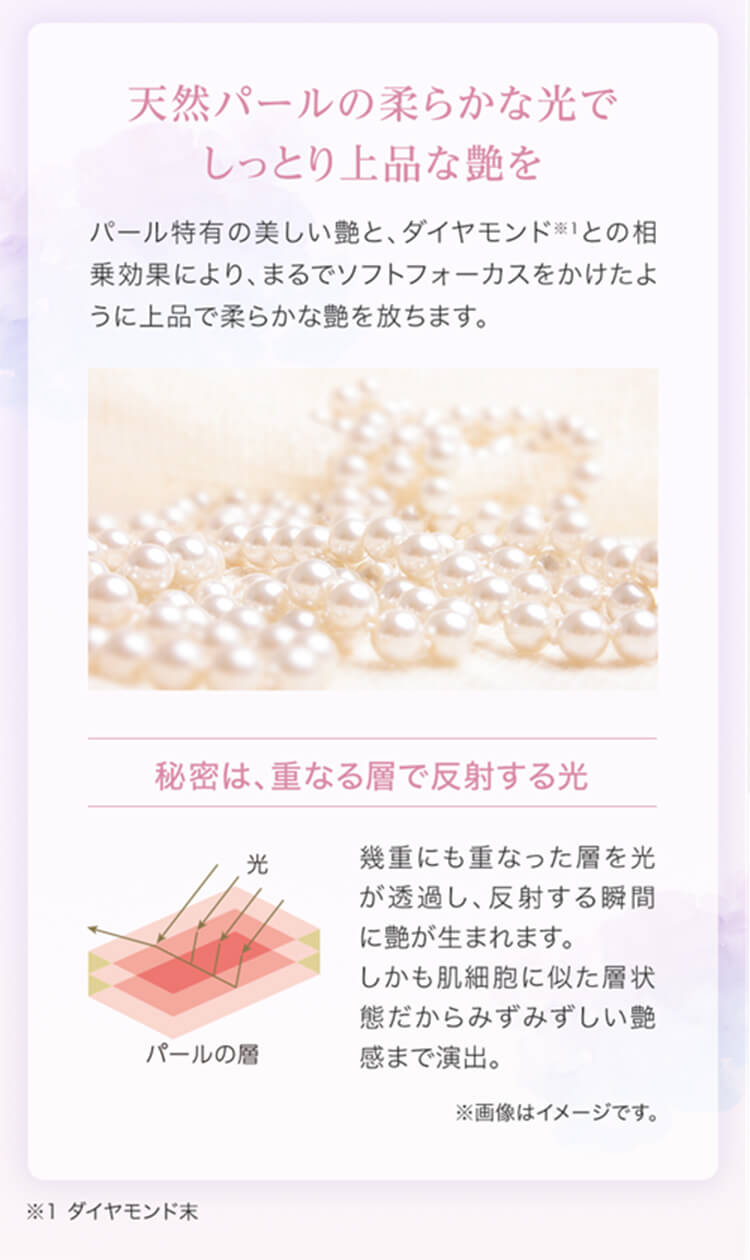 本物ならではの繊細な煌めきで、瞬時に透明肌を叶えます。