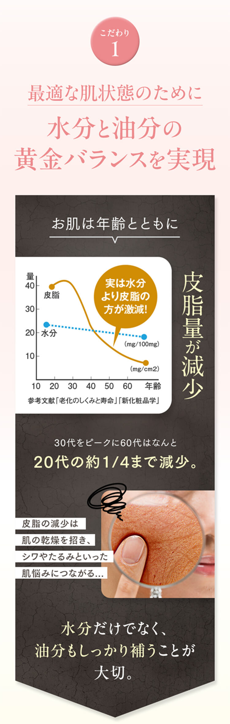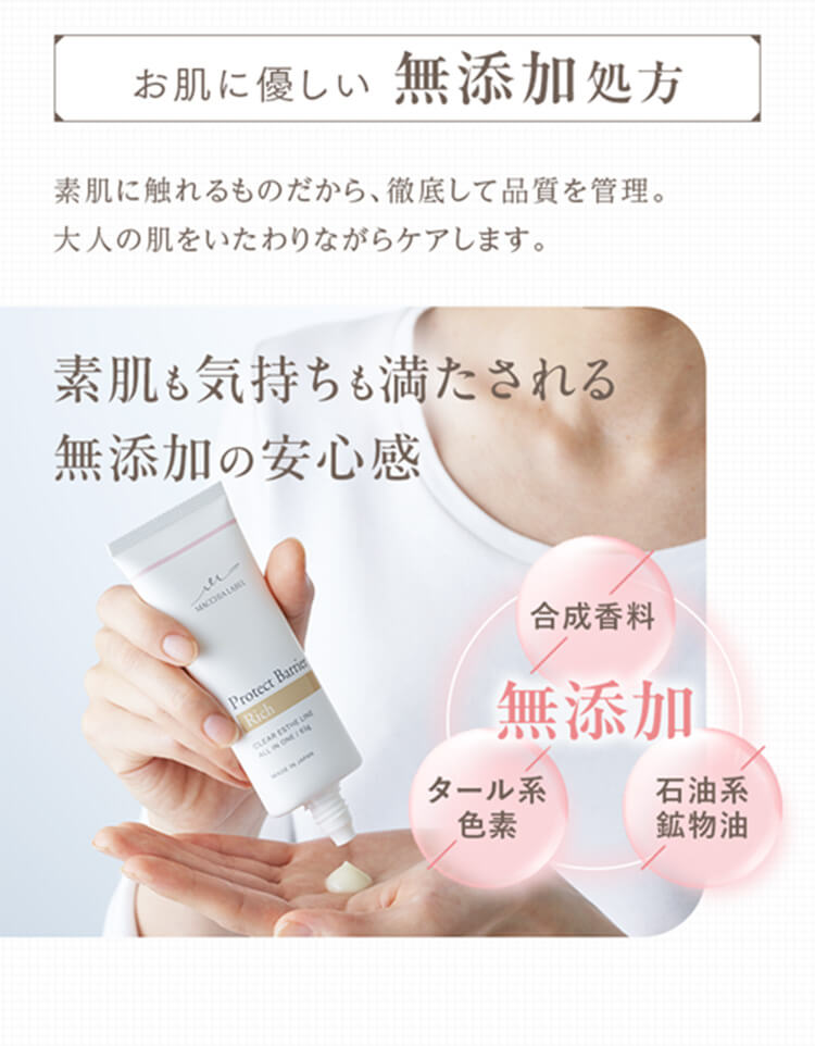 水分と油分を大人の肌に必要なバランスにこだわり補います。