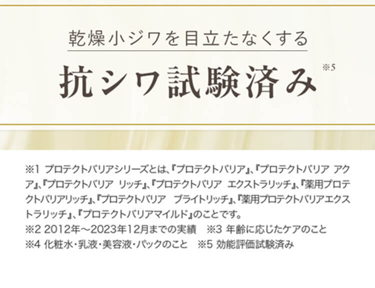 乾燥による小ジワを目立たなくする抗シワ試験済み(効能評価試験済み)