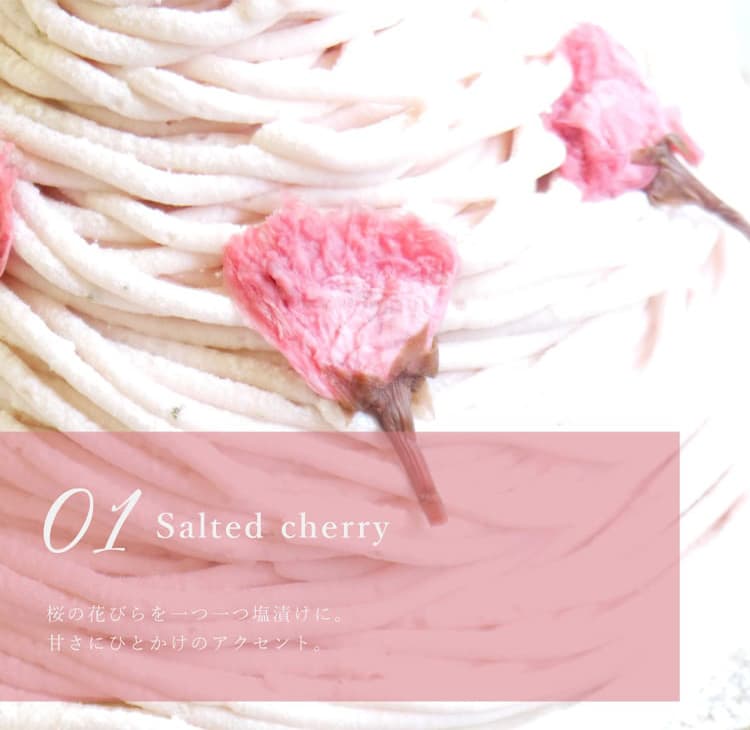 桜の塩漬けが甘さのアクセント。これまでにない、新しい和スイーツをお楽しみください。