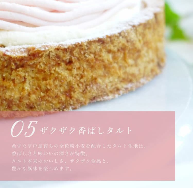 ザクザクのタルトは九州は長崎平戸島育ちの希少な全粒粉小麦を配合。小麦のおいしさが際立ちます。