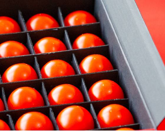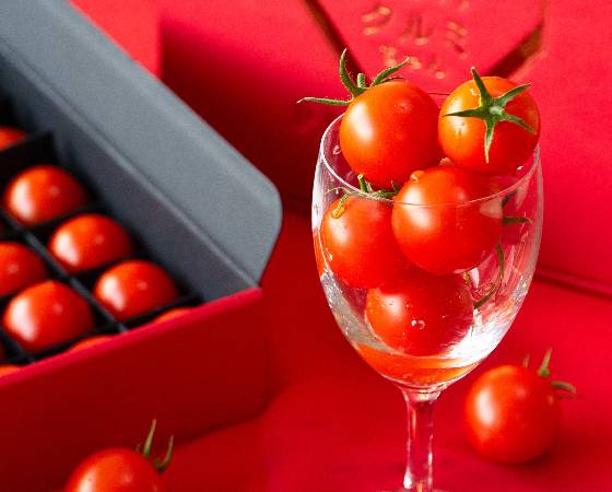 特殊な栽培法により与える水分量を格段に減らして栽培されたトマトは、糖分・アミノ酸をたっぷり含み濃厚な甘みが楽しめます。食べて感動すること間違いなし。トマトとは思えないほどの甘さと味の濃い果実をご堪能ください。
