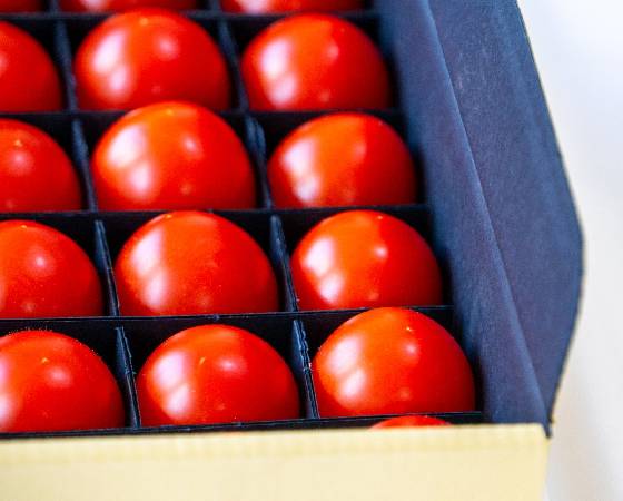 特殊な栽培法により与える水分量を格段に減らして栽培されたトマトは、糖分・アミノ酸をたっぷり含み濃厚な甘みが楽しめます。食べて感動すること間違いなし。トマトとは思えないほどの甘さと味の濃い果実をご堪能ください。