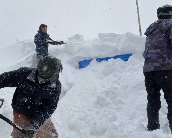 12月:骨組みを板とシートで覆い、雪を被せたら雪室が完成!