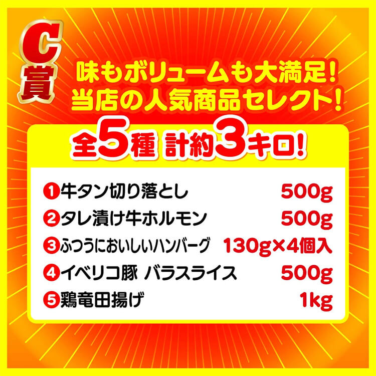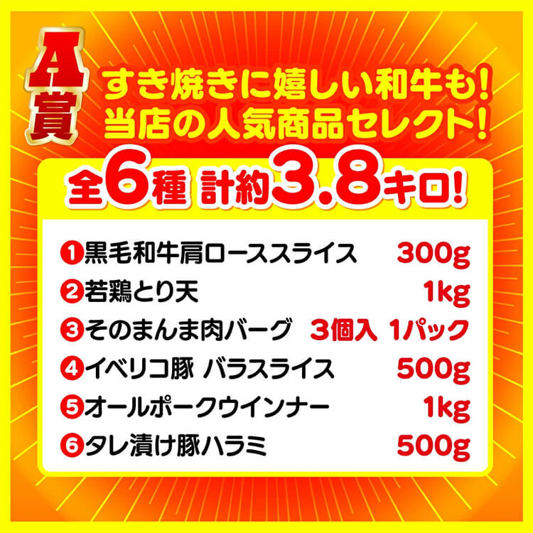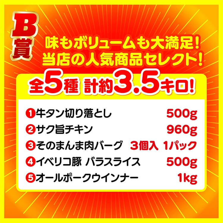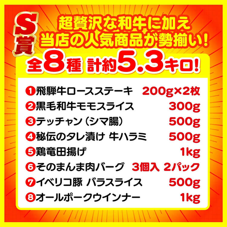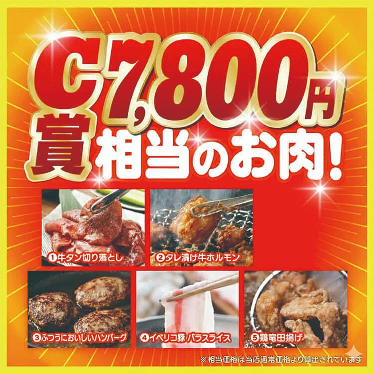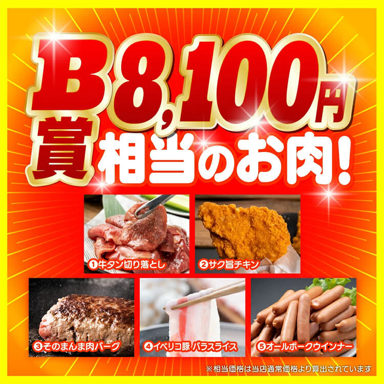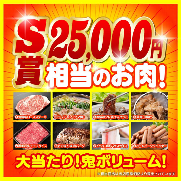 A賞、B賞、C賞、S賞、いずれかの賞が届く肉福袋!