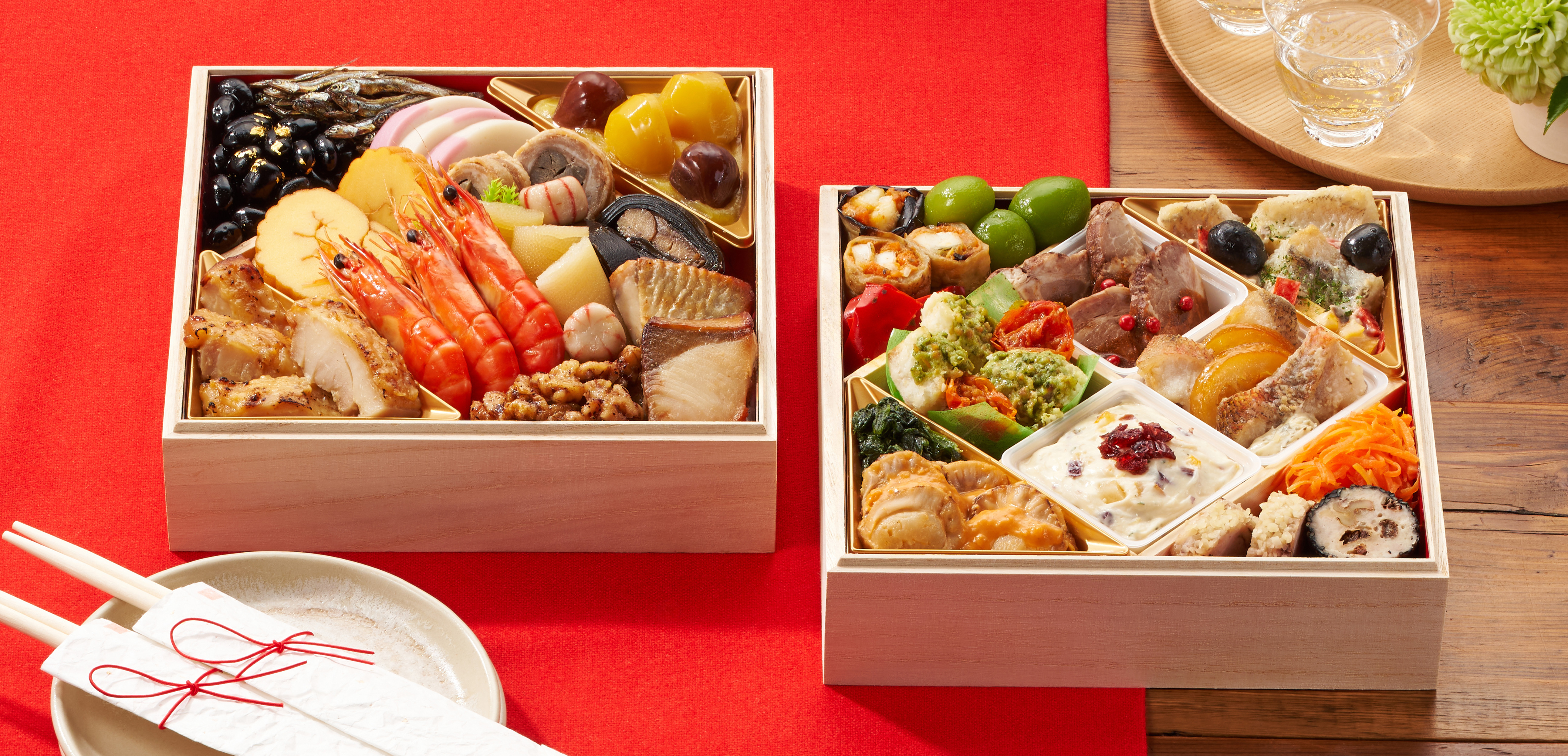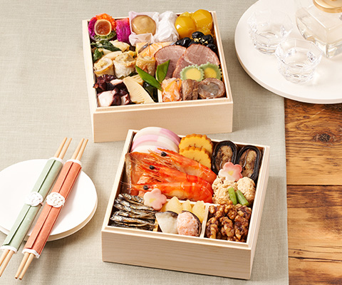 伝統的な和の重と彩華やかな洋の重をご家族みんなで仲良く楽しめます。
